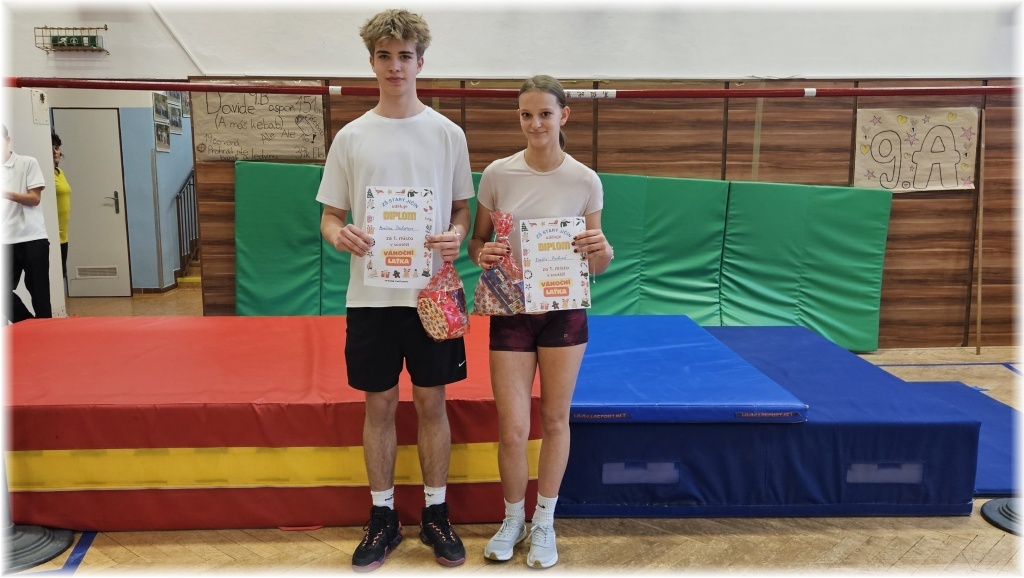 Tradičně před vánočními svátky se žáci i učitelé 2. stupně sešli v naší tělocvičně, kde se uskutečnila oblíbená soutěž ve skoku vysokém Vánoční laťka. Soutěž byla po celou dobu dramatická a s krásnou diváckou kulisou. Jsme moc rádi, že byla velmi vysoká i sportovní úroveň. O tom svědčí předvedené výkony našich sportovců, například ve starší kategorii chlapců se hned šesti z nich podařilo dostat přes laťku ve výšce 155 centimetrů. Nakonec v této nejsilnější kategorii vyhrál Martin Duchoň, kterému se podařilo skočit 165 cm. Super výkon! Na 2. místě se umístil David Škařupa a 3. místo vybojoval Christian Valík, oba kluci skočili 155 cm. U mladších kluků byl nejlepší Lukáš Simper, kterému se podařilo překonat laťku ve výšce pěkných 140 cm, na 2. místě skončil Václav Horák s výkonem 135 cm a 3. místo získal Filip Janovský (130 cm). Velmi kvalitní výkon předvedla Róza Rusková mezi staršími děvčaty, která dokázala překonat laťku ve výšce 140 cm a nechala za sebou druhou Nelu Hubovou (125 cm) a třetí v pořadí Martinu Sušovskou (115 cm). V kategorii mladších dívek vyhrála Sabina Šubová, která je velkým atletickým příslibem do budoucna, protože v 6. třídě už dokázala zvítězit velmi kvalitním výkonem 135 cm. O vítězství bojovala se Sofií Merhoutovou, která skončila druhá s pěknými 130 cm. A na 3. místě skončila Viktorie Duchoňová se 120 cm. Na závěr celé soutěže byli odměněni úplně všichni. Šesťáci, kteří zažili soutěžní laťku poprvé, tak i starší závodníci, kteří už zkušenosti měli a snažili se je zúročit co nejlépe. A také vylosovaní diváci, kteří se zúčastnili tomboly a zároveň vytvořili skvělou atmosféru. Vítězi anketní soutěže, kdy si mohli žáci naší školy tipnout nejlepší skokanský výkon chlapců i dívek předvedený na Vánoční laťce, se stala děvčata Nela Dočkálková, Karolína Hubová, Linda Jílková a Sofie Merhoutová, kterým se podařilo uhádnout přesně oba výkony. Gratulujeme!
